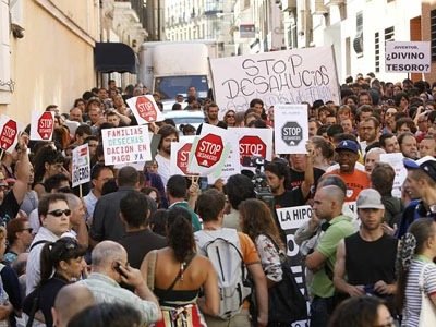 Además de los desalojos, no hay que olvidar las ejecuciones hipotecarias, causa mayoritaria de los desalojos. En estos tres meses el número de ejecuciones hipotecarias iniciadas ascienden a 24.792 , el tercer peor registro desde que estalló la crisis, con un incremento del 14% respecto al mismo periodo del año anterior, desmintiendo las voces interesadas que decían que las ejecuciones estaban disminuyendo. En total, el número de procedimientos ejecutorios iniciados por impago de hipoteca ya ha afectado a más de 374.230 familias. Teniendo en cuenta que cada familia cuenta con varios miembros y que cada ejecución suele llevarse por delante la vivienda de los avalistas, generalmente padres y personas allegadas, los datos del poder judicial representan una auténtica lacra. El ránquing de ejecuciones hipotecarias lo encabeza Andalucía (72.900) seguida muy de cerca por Cataluña (70.663) y la Comunidad Valenciana (69.951). El ranquing de ejecuciones por provincias lo encabeza Barcelona (41.731) , Madrid (40.123) y Alicante (32.228).