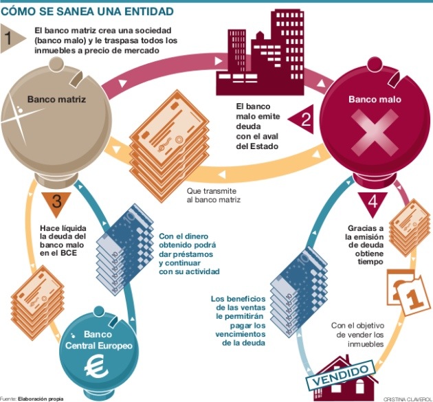 Desde que o Estado español asinase o rescate bancario coa Troika europea un dos requisitos deste memorandum era o de crear un ?banco malo?, é dicir, unha entidade que comprase a prezos abultados unha fracción dos pisos da banca para intentar cadrar as contas. As millonarias axudas directas con diñeiro público que xa viñan recibindo supoñían aumentar a débeda dos bancos rescatados de forma que era necesario que entrase un capital que non fóra en forma de débeda.
