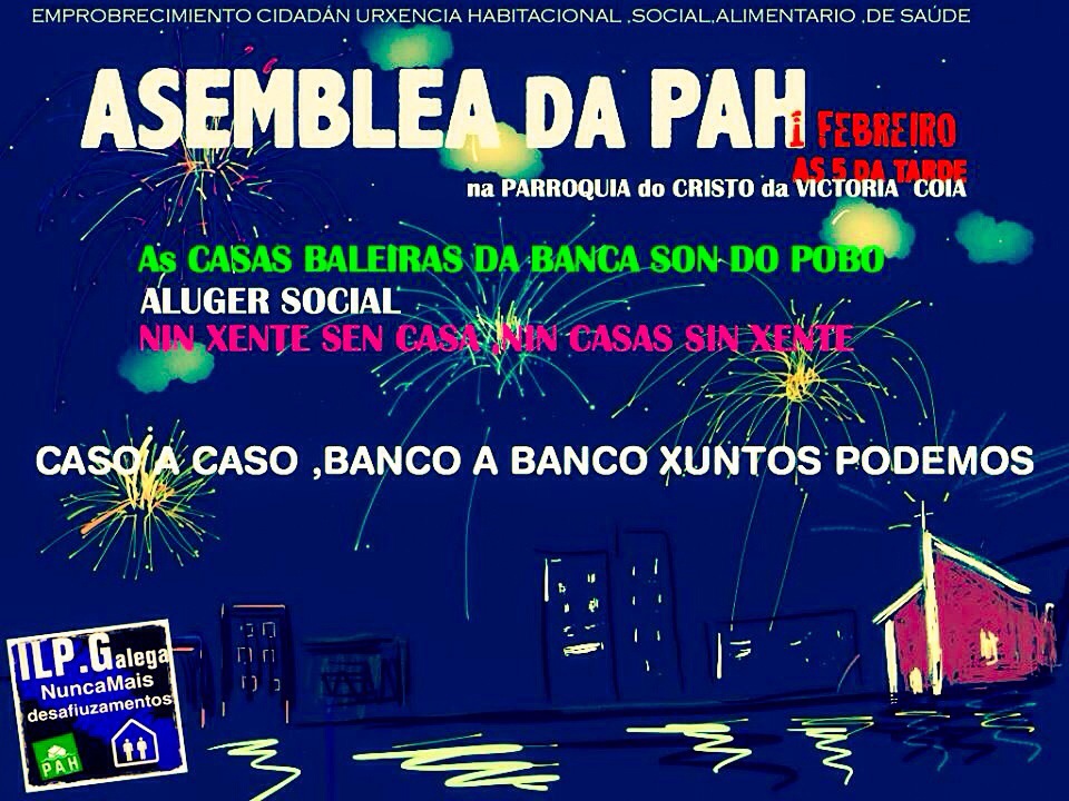 Na Asemblea da PAH ,trataremos estes temas Porque a emerxencia habitacional esta unida ás necesidades alimentarias, de Saúde, sociais, de electricidade.