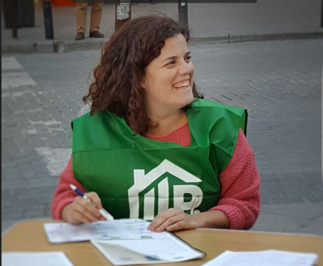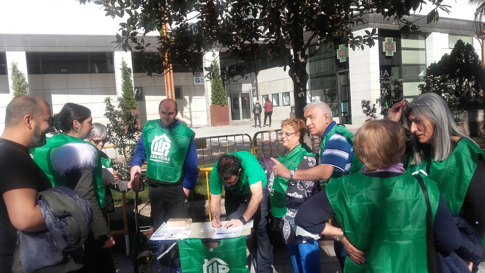 Empiezan a aparecer nuestras mesas para ponerle un color verde a las aceras. Las personas que se acercan perciben que tenemos una sonrisa capaz de ablandar cualquier coraza y una prometedora sensación de victoria aunque igual han oído hablar poco de esta ILP; la televisión es esquiva a las razones que mueven las manecillas de esta gente inquebrantable, mujeres, casi siempre mujeres que se parten el alma en los desahucios de cualquier compañera. Para alguien con tanto arrastre a sus espaldas ¿qué supone pedir y explicar el porqué de una firma?