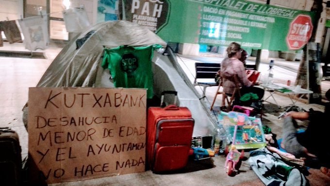 Sin alternativa habitacional, Ingrid y su hijo, junto a las compañeras de PAH Hospitalet, iniciaron el mismo miércoles 31 de julio una acampada indefinida delante del Ayuntamiento de Hospitalet. Durante este tiempo han ido a acompañarlas diferentes entidades sociales y las PAHs del territorio catalán. La respuesta de Servicios Sociales ha sido que se busquen un piso para vivir y que les ayudarán para la entrada. ¿Y luego qué? ¿Otro desahucio? Está claro que la alternativa del Ayuntamiento no es una solución para Ingrid. En primer lugar porque con sus ingresos y una deuda del primer piso del que fue desahuciada nadie le alquilará ninguna vivienda, y en el supuesto, casi imposible, de que lo consiguiera, el primer mes ya no lo podría pagar. Es inaudito que la solución sea responsabilizar más a la familia que ha sido desahuciada, criminalizándola y culpándola por su situación. Mientras la Administración durante estos años ha sido incapaz de buscar soluciones y medidas para ampliar el parque de vivienda pública inexistente de la ciudad.