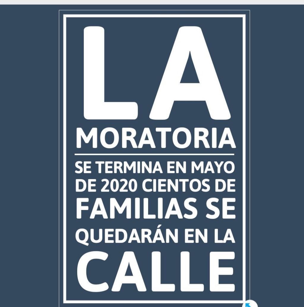 La Plataforma de Afectados por la Hipoteca (PAH) ha iniciado una campaña para alertar de la “masacre social” que se producirá en mayo de 2020 que es cuando vence la moratoria de las ejecuciones hipotecarias aprobada por el Gobierno para proteger de los desahucios a los colectivos más vulnerables. Un moratoria que protege del lanzamiento a familias con hijos menores de edad o monoparentales con hijos a cargo, desempleo, discapacidad, dependencia o enfermedad grave o violencia de género, y que cuando acabe pondrá «cientos de familias en la calle».