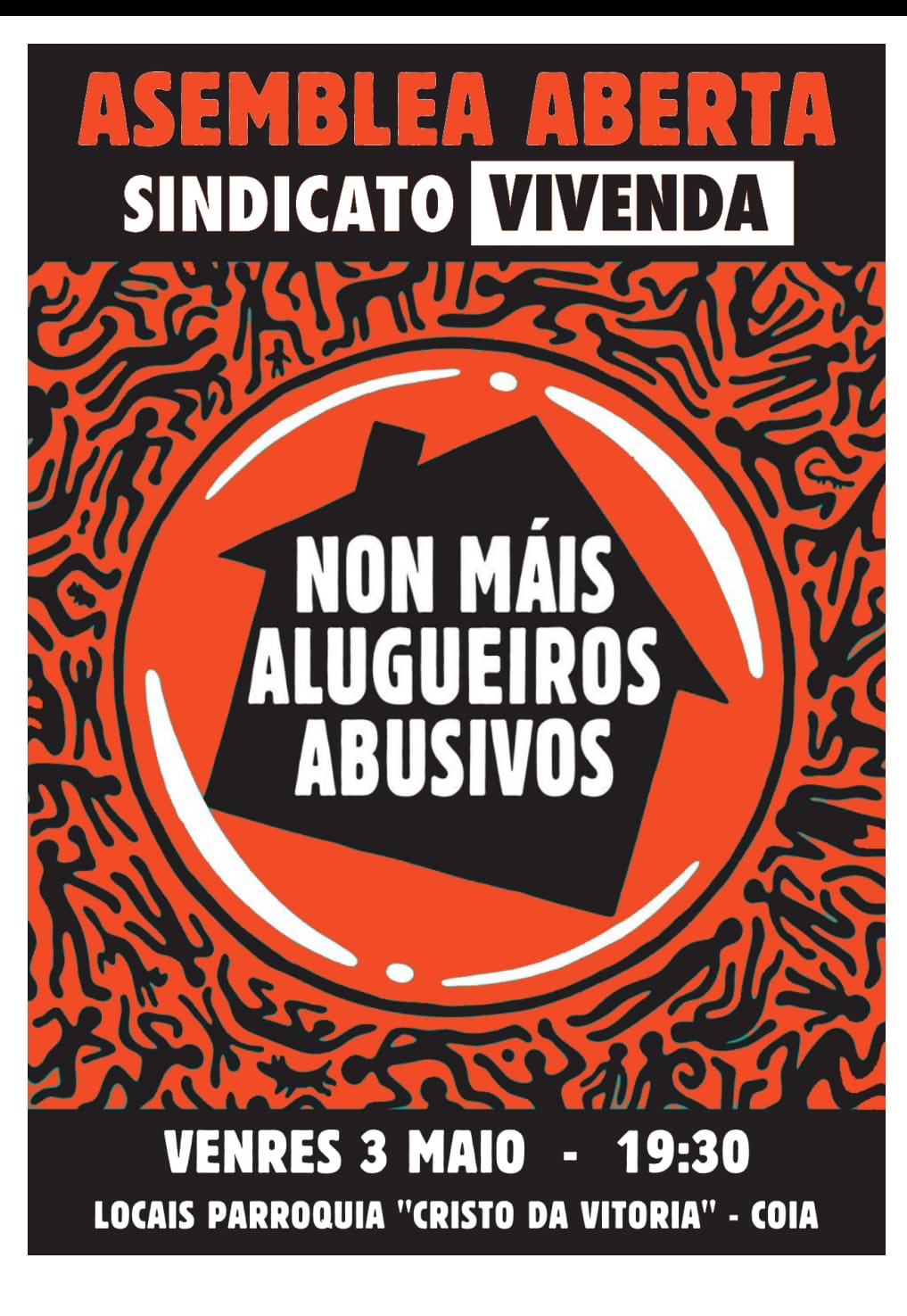Por todo isto, facemos un chamamento e unha invitación a toda as persoas de Vigo e concellos limítrofes para que se incorporen a este proceso cara á creación dun Sindicato de Inquilinas e Inquilinos: